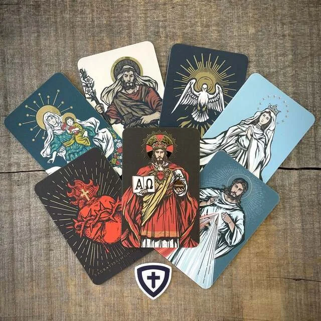 This set of 7 prayer cards invite us to beautiful prayer and devotion. The unique design and study feel make these cards a must have for home altars or on the go prayer.